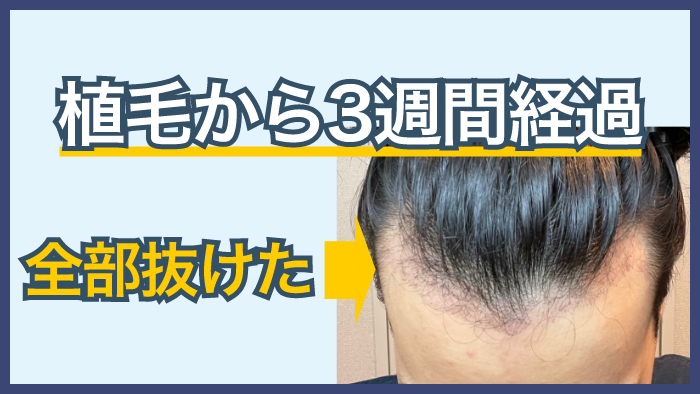 ・植毛から3週間で一時脱毛により植えた毛がほとんど抜けた